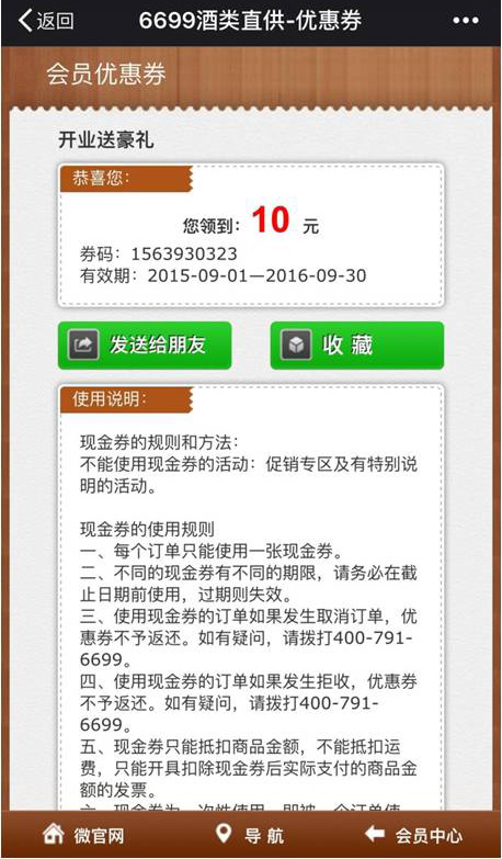 B:会员第一次消费后,可以给会员派发优惠券,优惠券可自定义使用时间及使用规则;