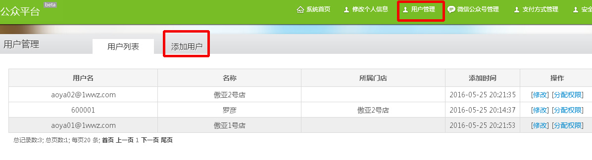 进入【傲亚后台】→【右上角】→【用户管理】→【添加用户】