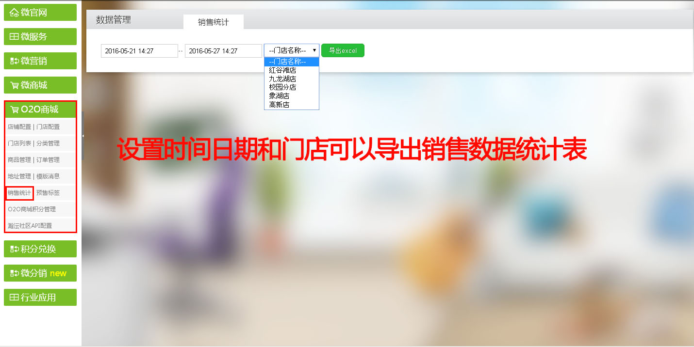 进入【傲亚后台】→【O2O商城】→【销售统计】