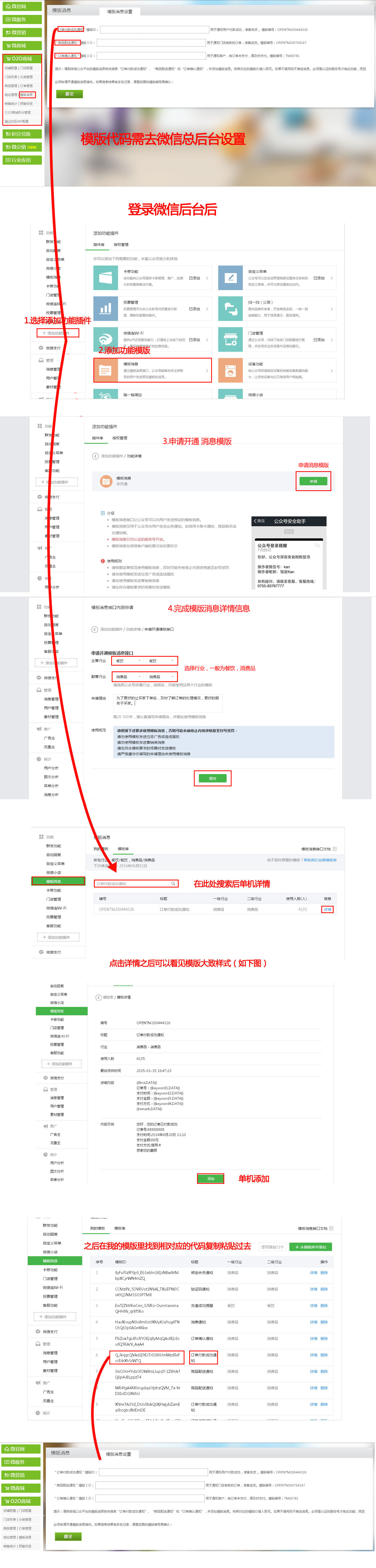 进入【傲亚后台】→【O2O商城】→【模版消息】