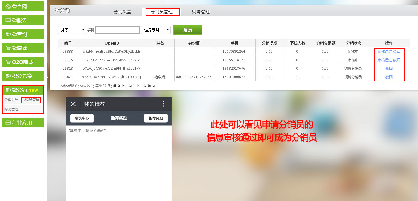 进入【傲亚后台】→【微分销】→【分销员管理】