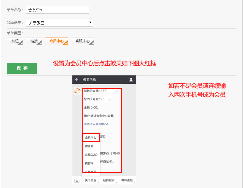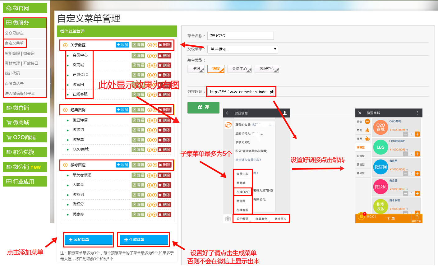 进入【傲亚后台】→【微服务】→【自定义菜单】