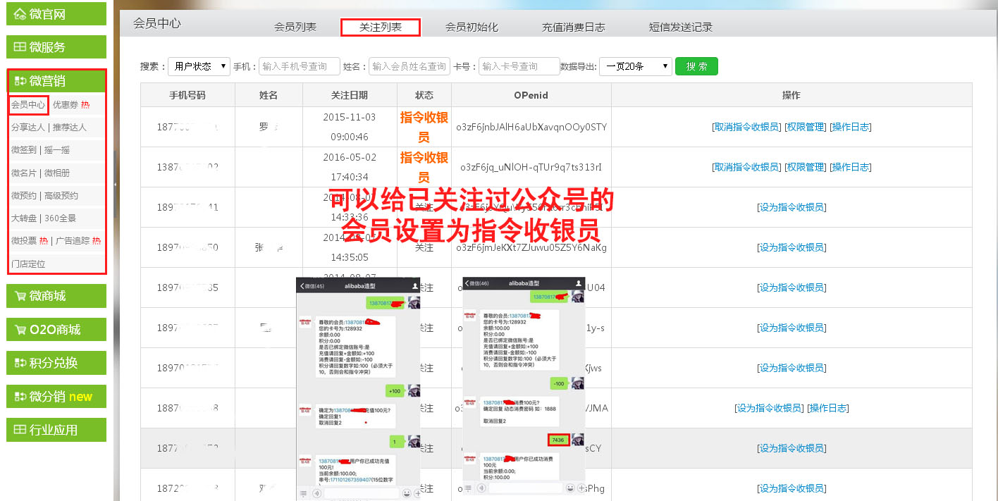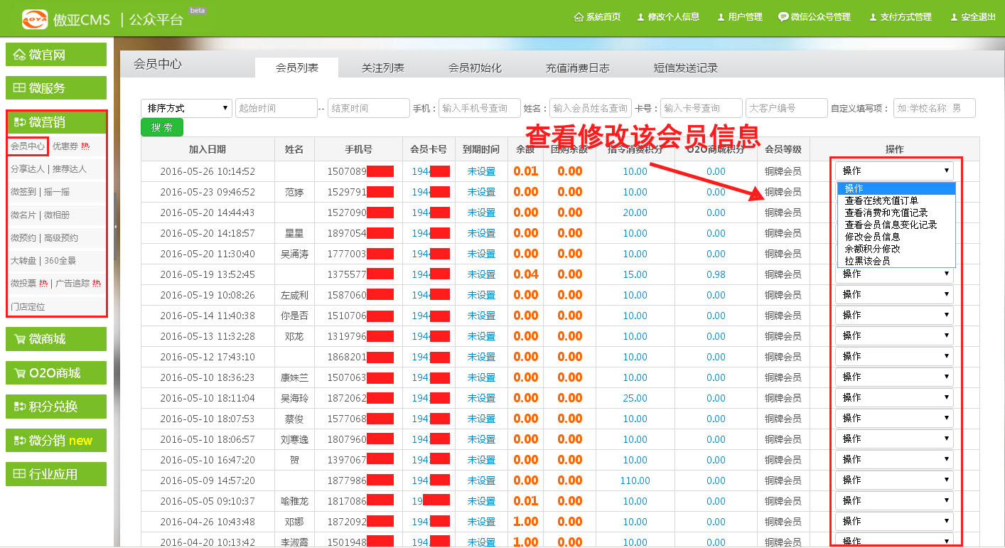 进入【傲亚后台】→【微营销】→【会员中心】