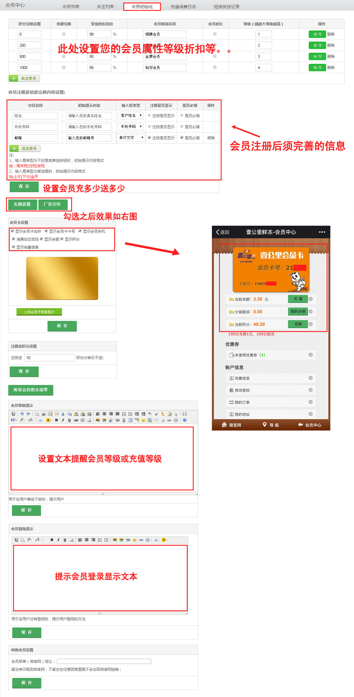 会员初始化设置
