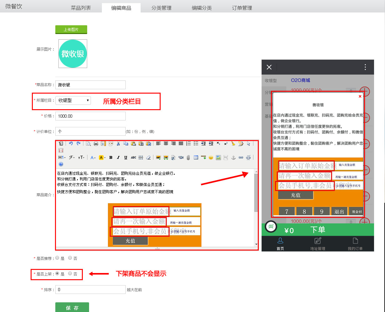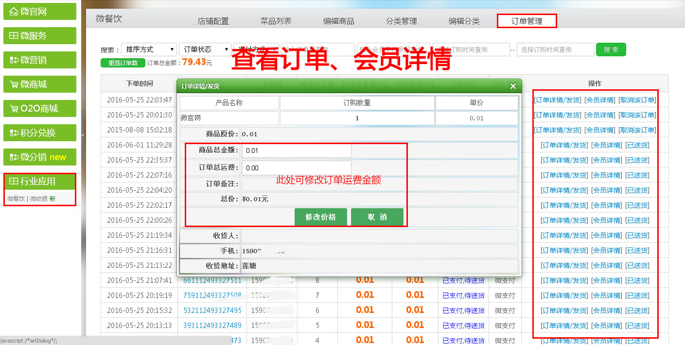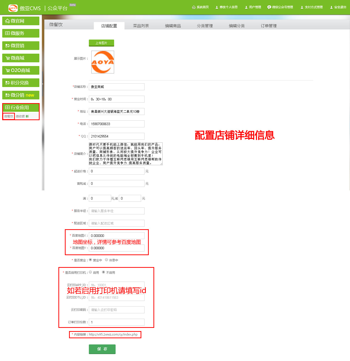 进入【傲亚后台】→【行业应用】→【微餐饮】