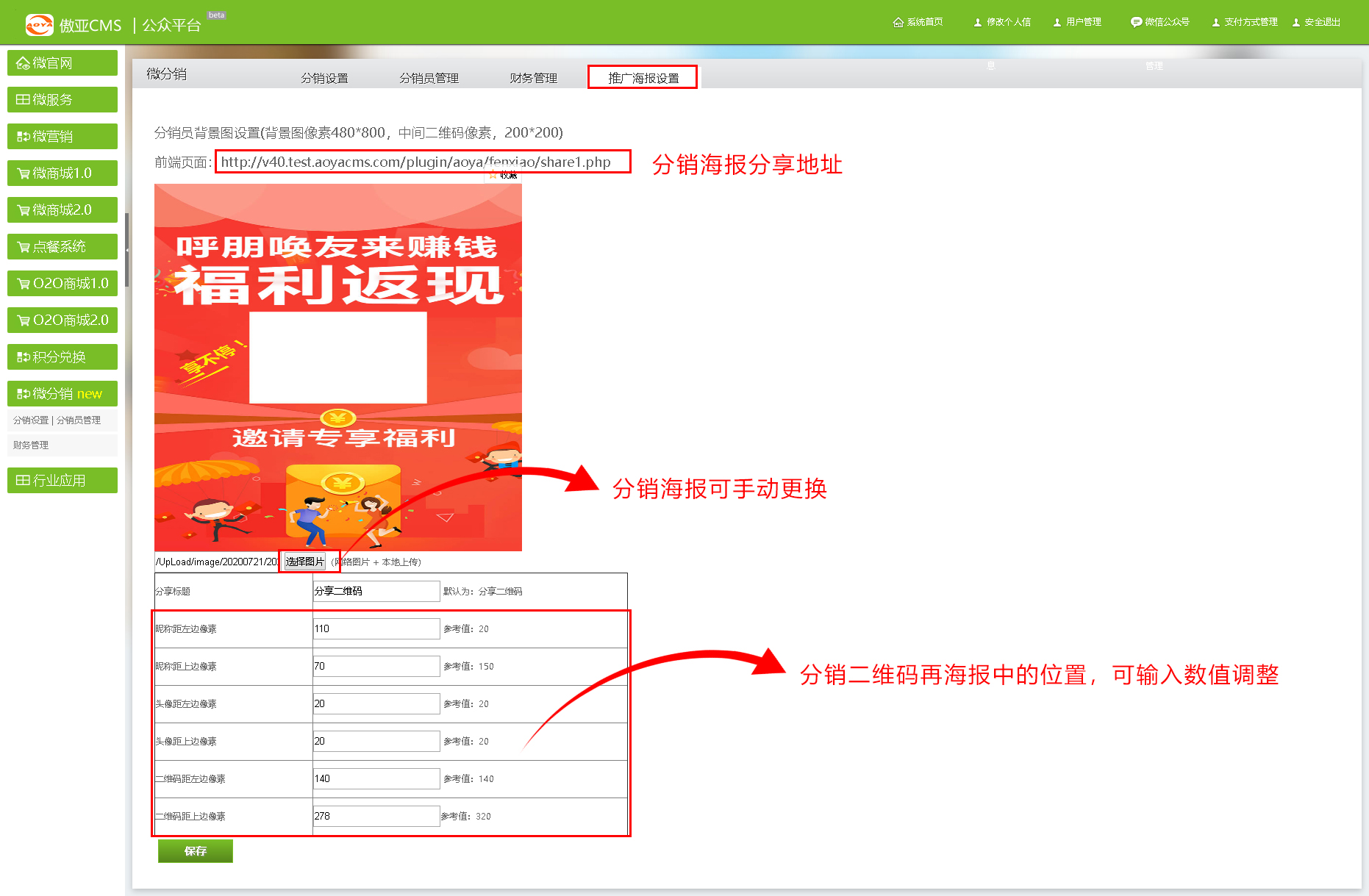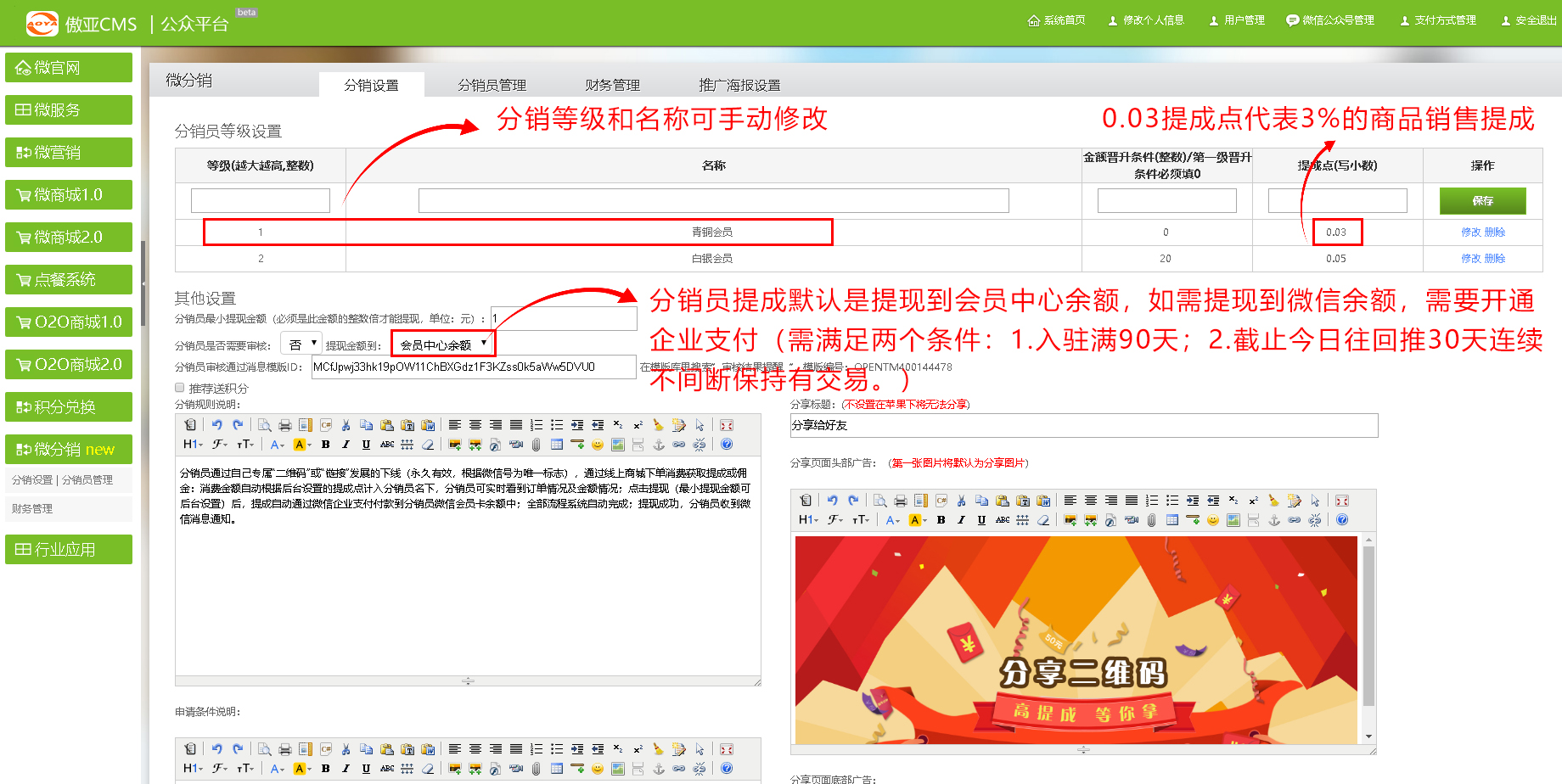进入【傲亚后台】→【O2O商城】→【分销设置】