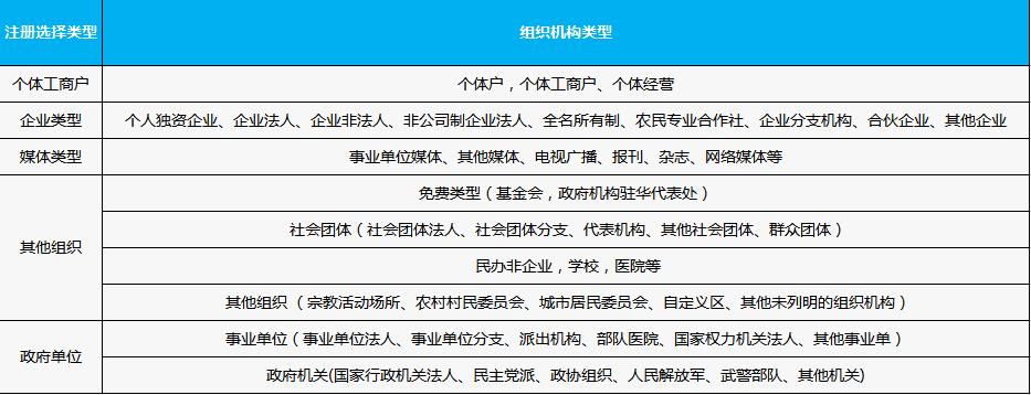 1)若组织机构代码证上“机构类型”为:企业法人、企业非法人、请勿选择“其他组织类型”进行登记;