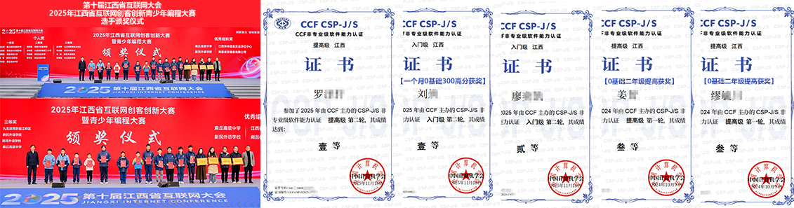 自创OJ系统,即Online Judge系统,是一种在编程竞赛中用来评测参赛程序的在线系统,也可以用于平时练习,我们自主研发的在 线判题OJ系统,更加契合我们的日常教学需求,并能有效地实现教学内容。1年算法c++刷300题,csp普及组1等,顶级私立初中竞赛 班,重点高中重点班2年出成绩,csp提高1等,获得985强基资格,算法C++刷400题3年冲省队,冲击清北(需要天赋)(根据个人情况上 下浮动一倍时间)